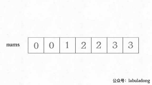 快慢指针在数组中实际是指两个索引值,快指针始终在慢指针的前面,一般初始化为 slow = 0, fast = 0 或 1。循环条件为 while(fast < nums.length) 。